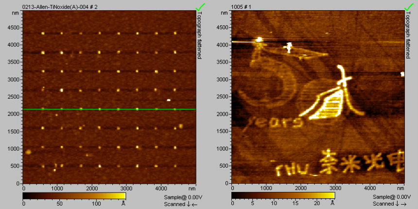右圖:在 Si 表面氧化產生東海大學五十週年校慶紀念圖案